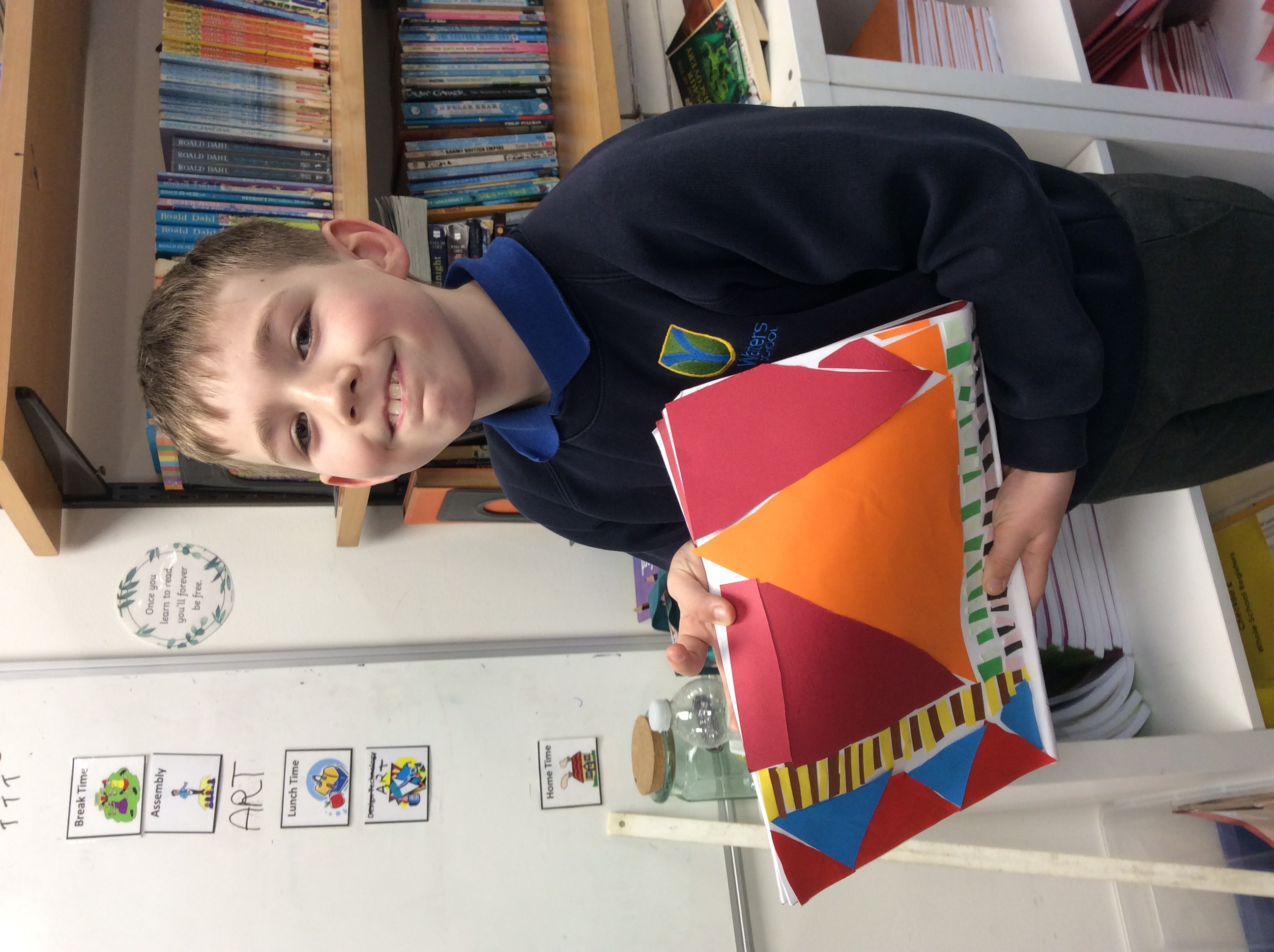 First, we carefully practiced our cutting techniques, focusing on the size and shape, making sure it wasn't too small. Then we moved on to cutting our coloured paper into small shapes. We made rectangles, squares, triangles