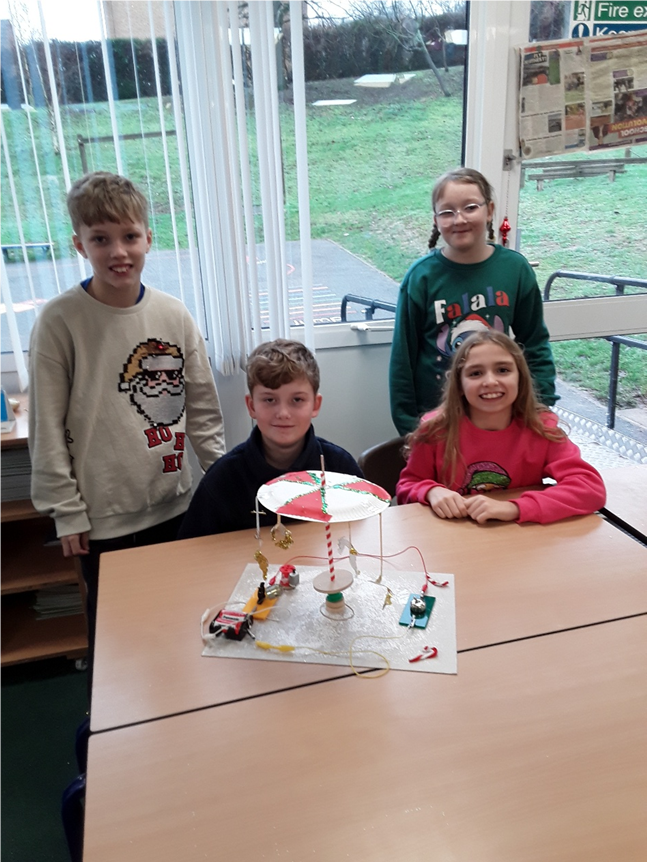 This week for DT, we worked in a small team to build a rotating fairground ride for a winter wonderland. We used our design but adapted it as part of our construction process. Following on from our science lessons about Electricity, we built an electrical circuit with a switch, motor, pulley and axle. We made our design appealing to customers by decorating it with fake snow, rotating reindeers and a festive, glittery colour. This definitely got all all in the Christmas spirit!