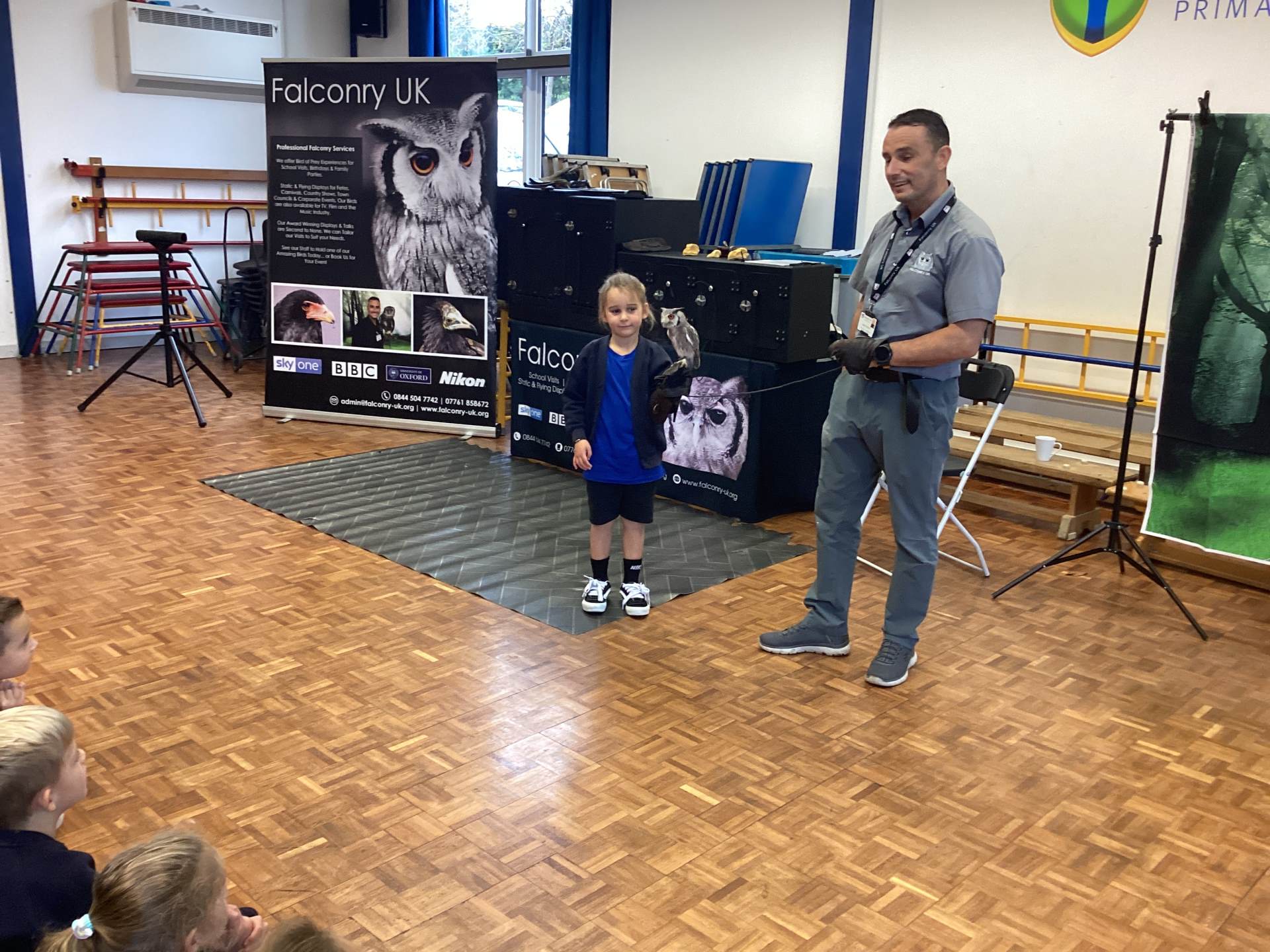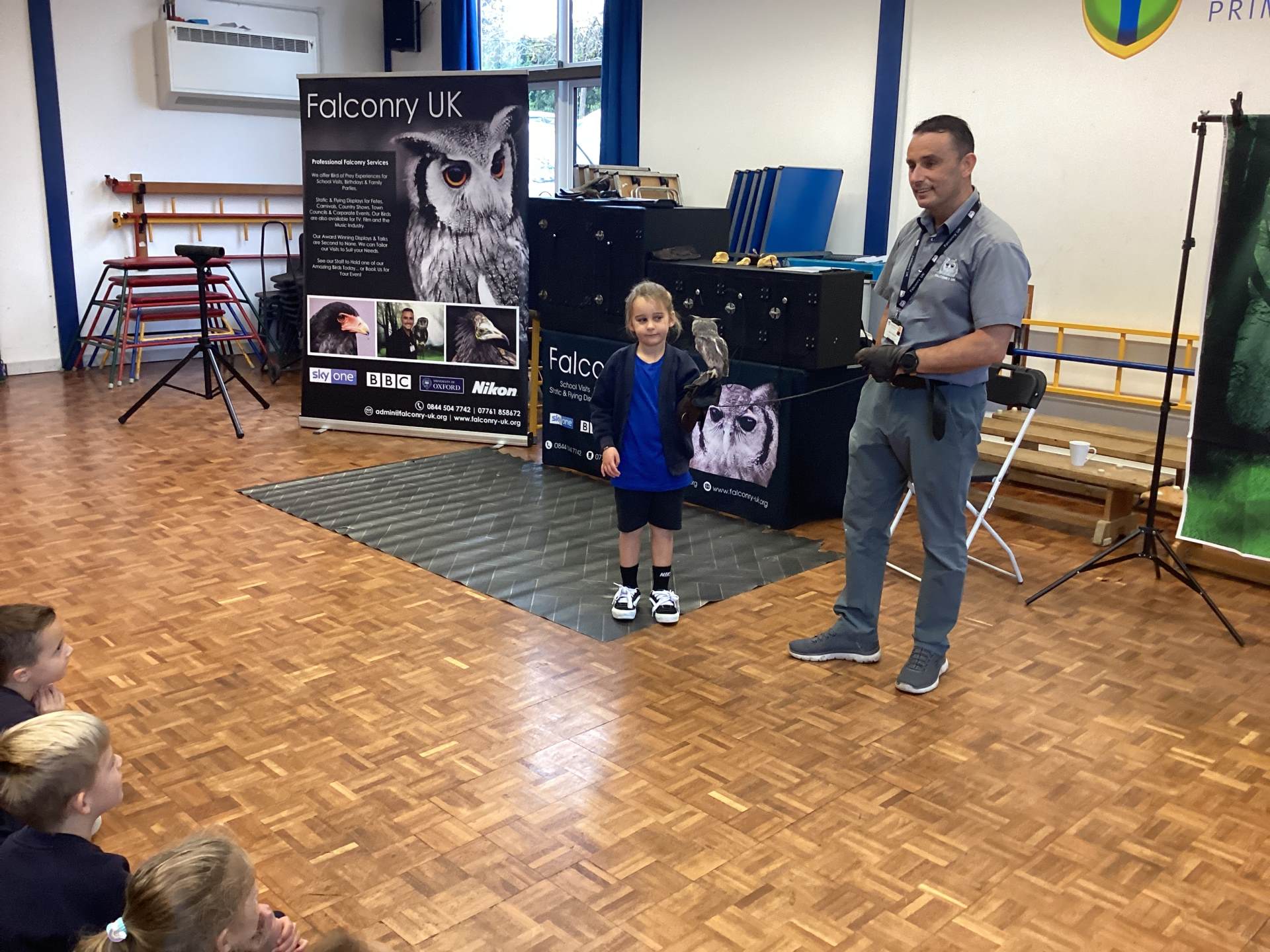 We also had a very exciting visit from Falconry UK. We met a range of amazing birds, including Bailey the white-faced owl and Blu the blue-winged kookaburra. Some of us were even lucky enough to hold the birds and take part in a special photoshoot with them! It was a truly fascinating experience, and we learned so much about these incredible creatures.
