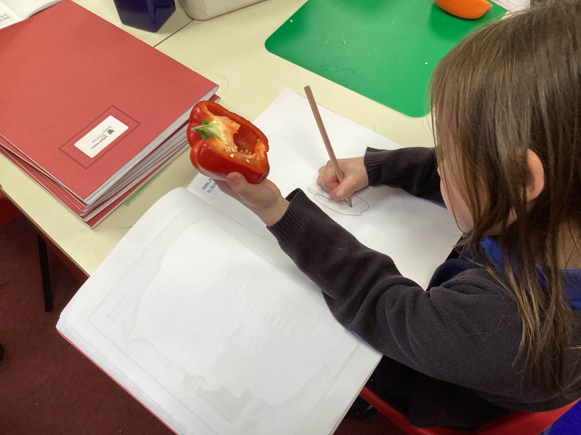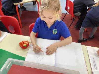 The children have thoroughly enjoyed focusing on a range of drawing techniques during Art Week. They practised using different skills such as stippling and cross-hatching to add detail and texture to their work. We also explored how to use light and shadow to make our drawings appear three-dimensional, helping objects to look more realistic. To finish the week, the children created a still life sketch of a cut-up pepper, carefully observing shapes, lines and shading. They showed fantastic concentration, creativity and effort, and produced some wonderful pieces of artwork.