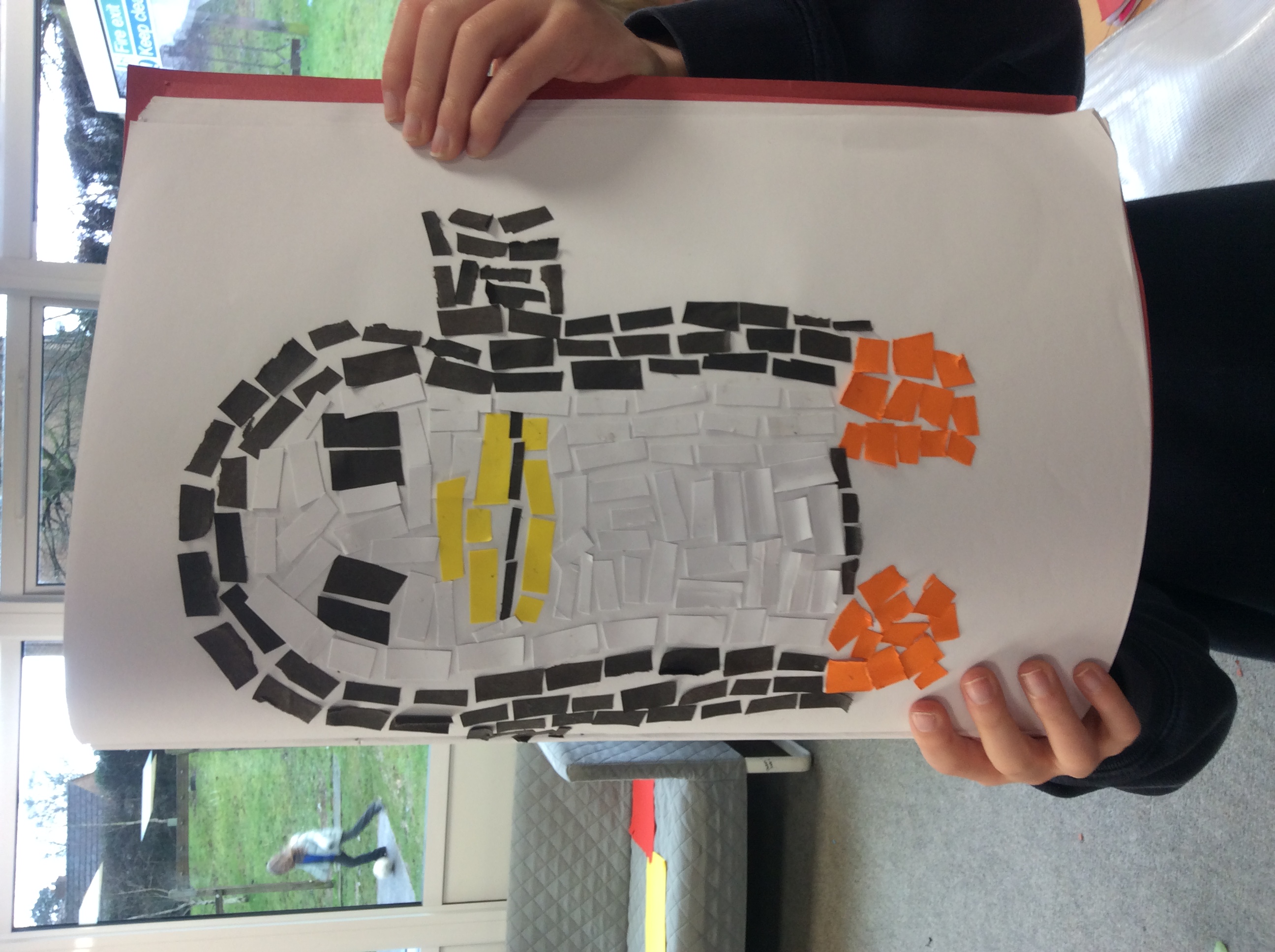 First, we carefully practiced our cutting techniques, focusing on the size and shape, making sure it wasn't too small. Then we moved on to cutting our coloured paper into small shapes. We made rectangles, squares, triangles