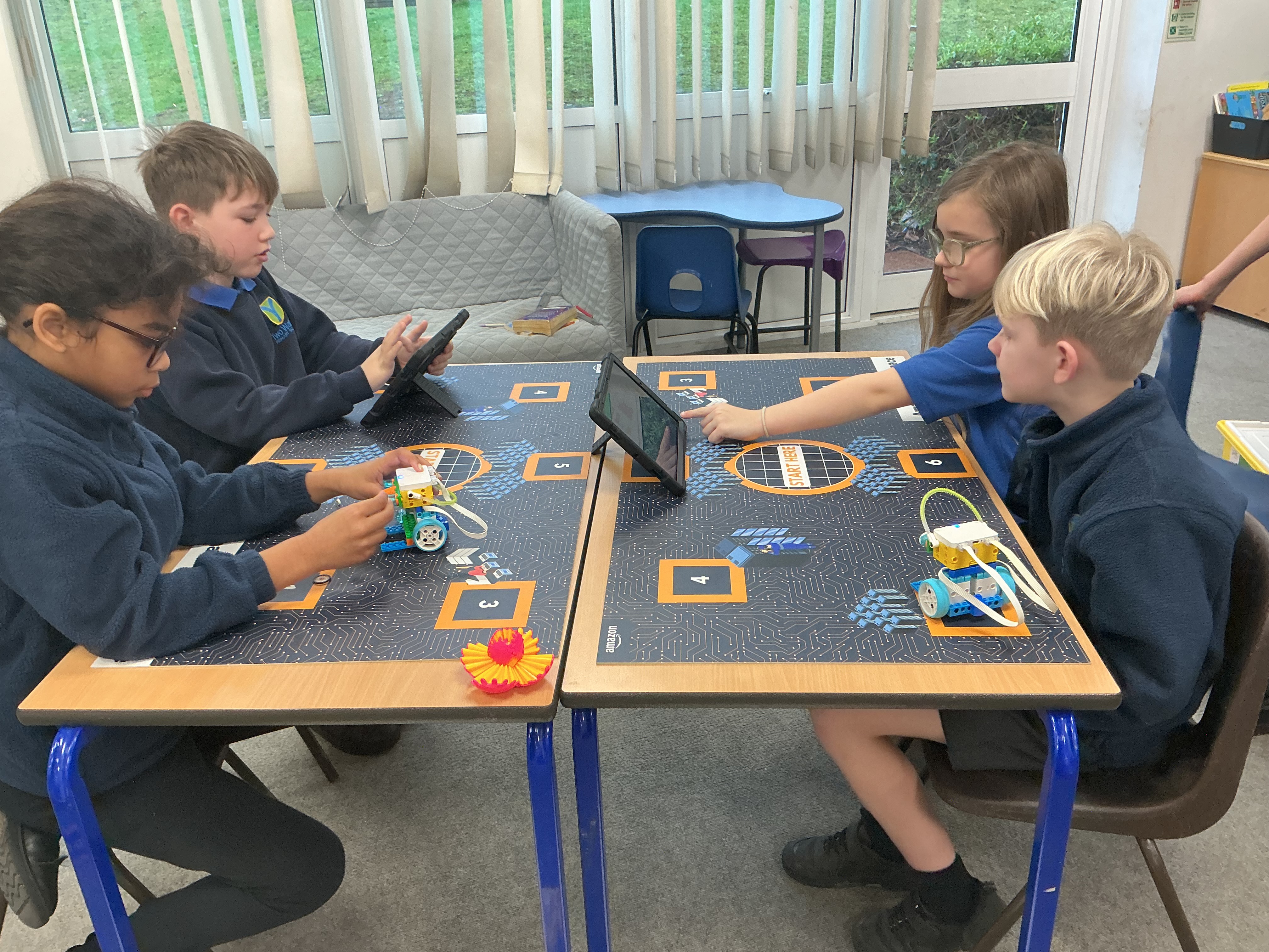 Next, we learned how to code our robot. We worked together to program it to travel to the numbers 1 to 5 on our mat. We had to think carefully about how to make the robot move forwards, turn, and stop in the right place. At the end, we even programmed our robot to do a victory song and dance!