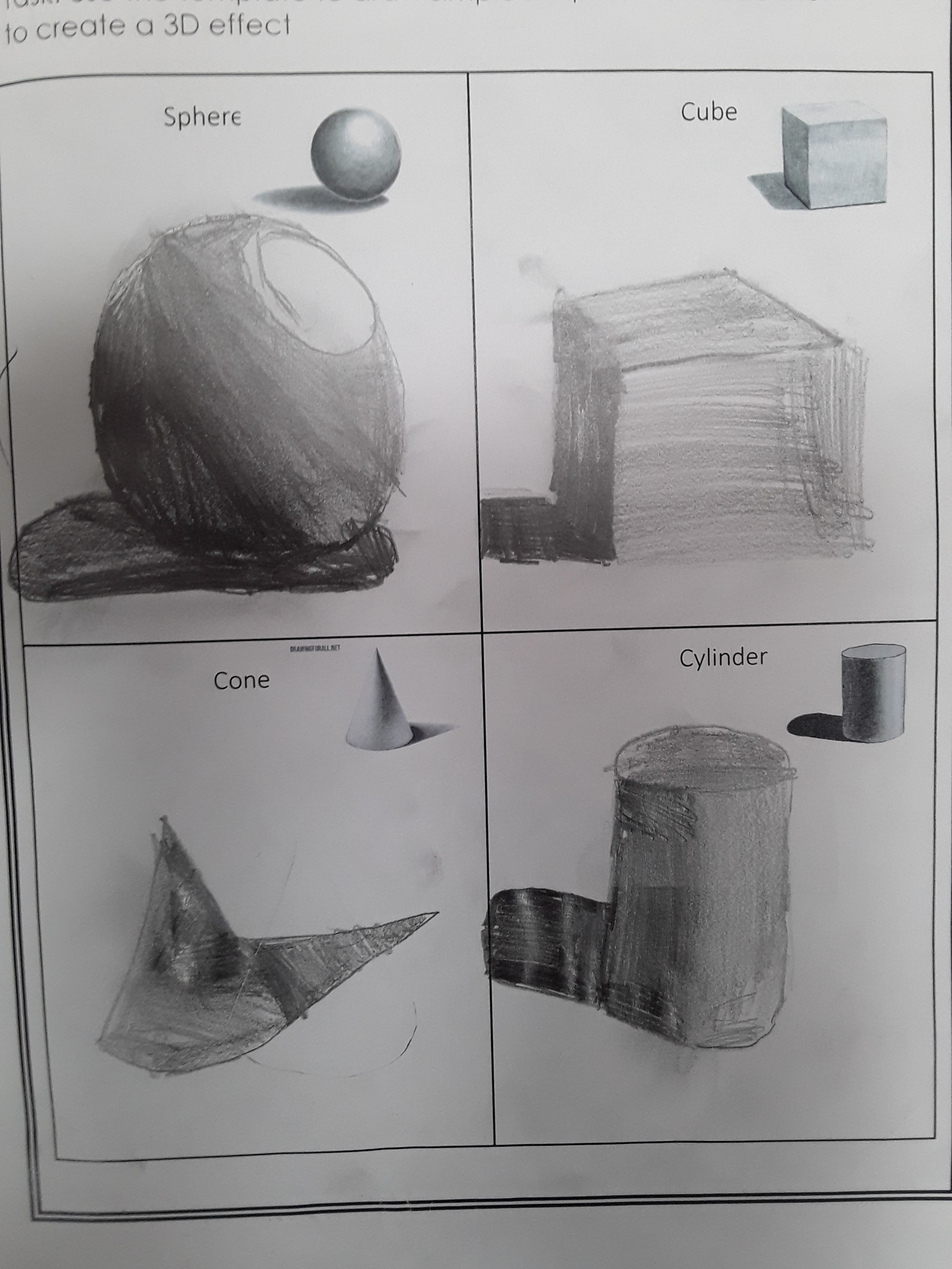 Finally, we applied these skills to study light direction and shading in our own drawings. By observing how light fell across different objects we learned how to create more realistic three-dimensional effects. It was exciting to see how much difference the placement of highlights and shadows could make!
