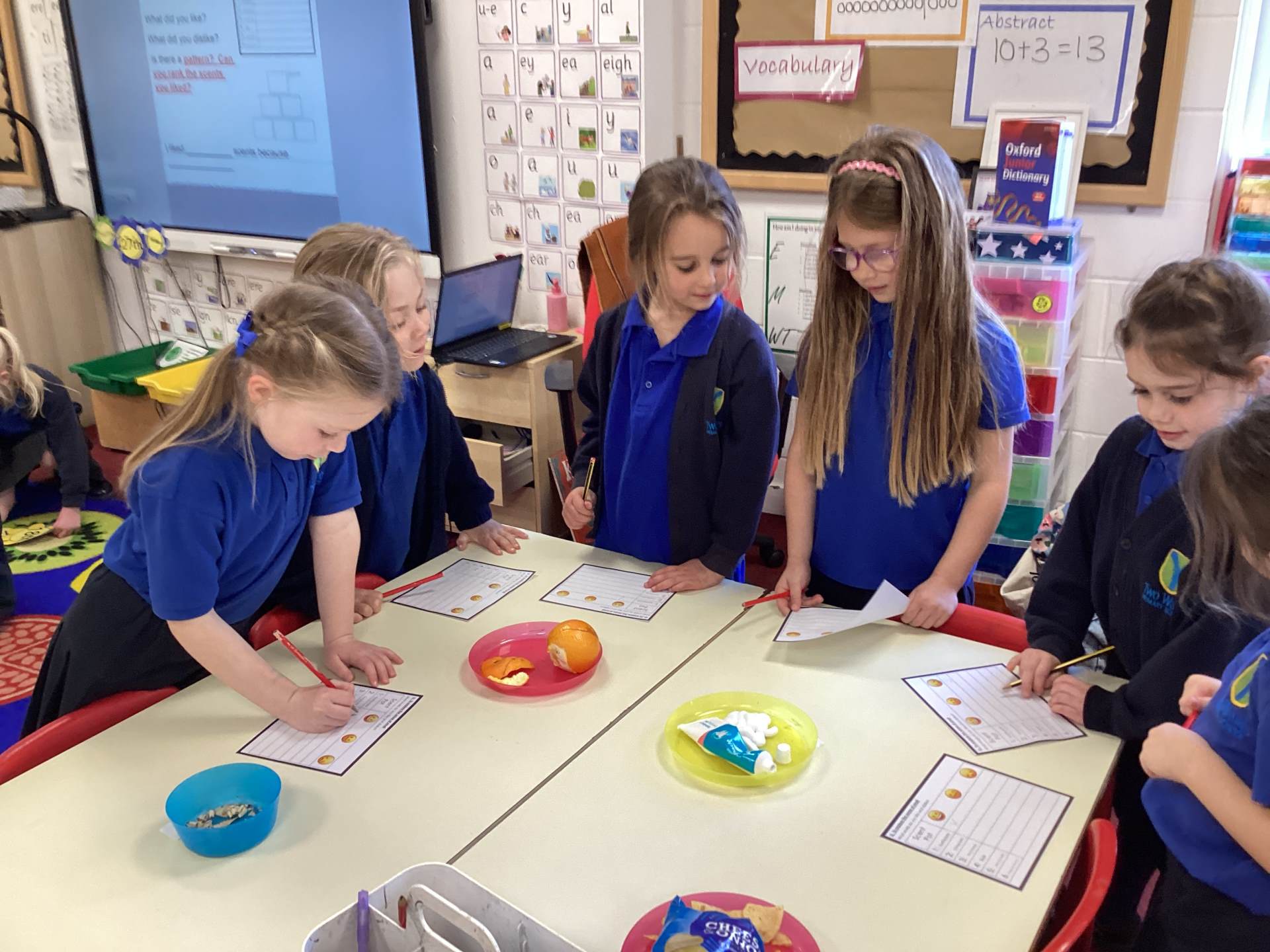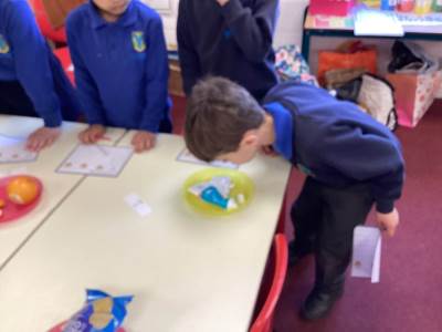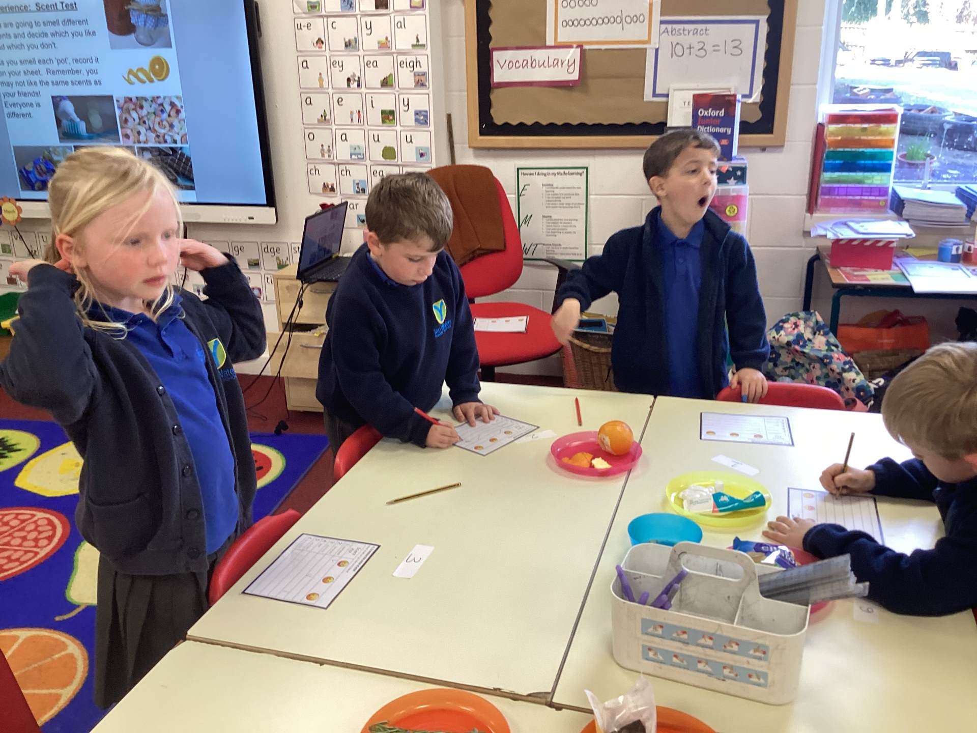 We also carried out a scent challenge, where the children had the opportunity to smell a range of different items, from cheese and onion crisps to fresh basil. There were lots of mixed reactions – some smells were more popular than others! It was a fun (and sometimes slightly whiffy!) way to learn more about how our sense of smell works and how our noses help us to identify different scents.