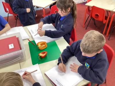 The children have thoroughly enjoyed focusing on a range of drawing techniques during Art Week. They practised using different skills such as stippling and cross-hatching to add detail and texture to their work. We also explored how to use light and shadow to make our drawings appear three-dimensional, helping objects to look more realistic. To finish the week, the children created a still life sketch of a cut-up pepper, carefully observing shapes, lines and shading. They showed fantastic concentration, creativity and effort, and produced some wonderful pieces of artwork.