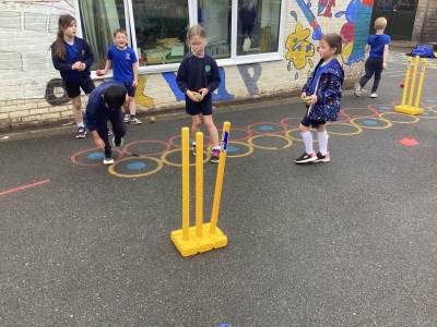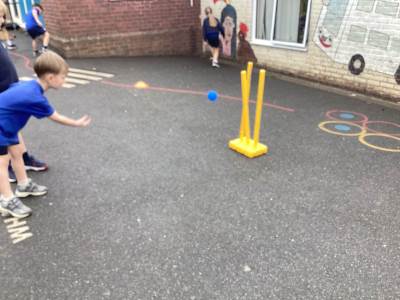 This week in Year 1, we began our new learning in PE, focusing on Kwik Cricket. We practised throwing a tennis ball at a target, aiming carefully at the stumps. This helped us develop our accuracy and coordination. We also started to learn some new vocabulary, such as “wicket,” to help us understand the game of cricket.